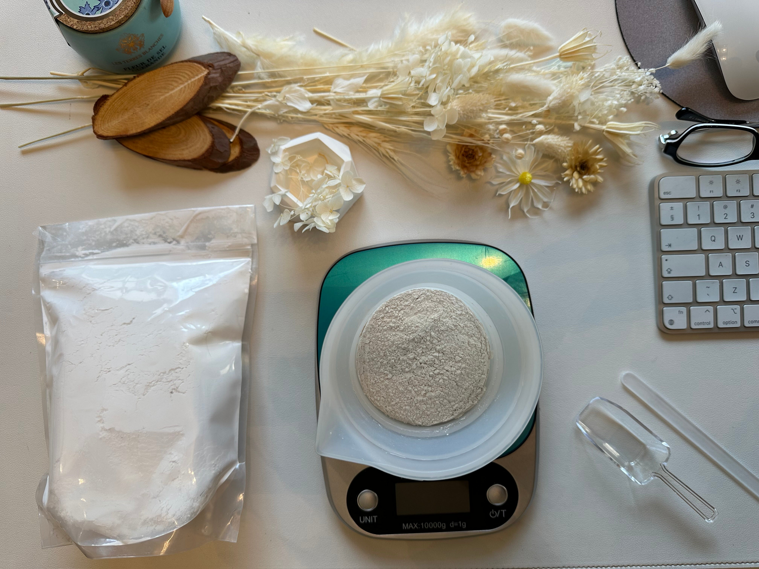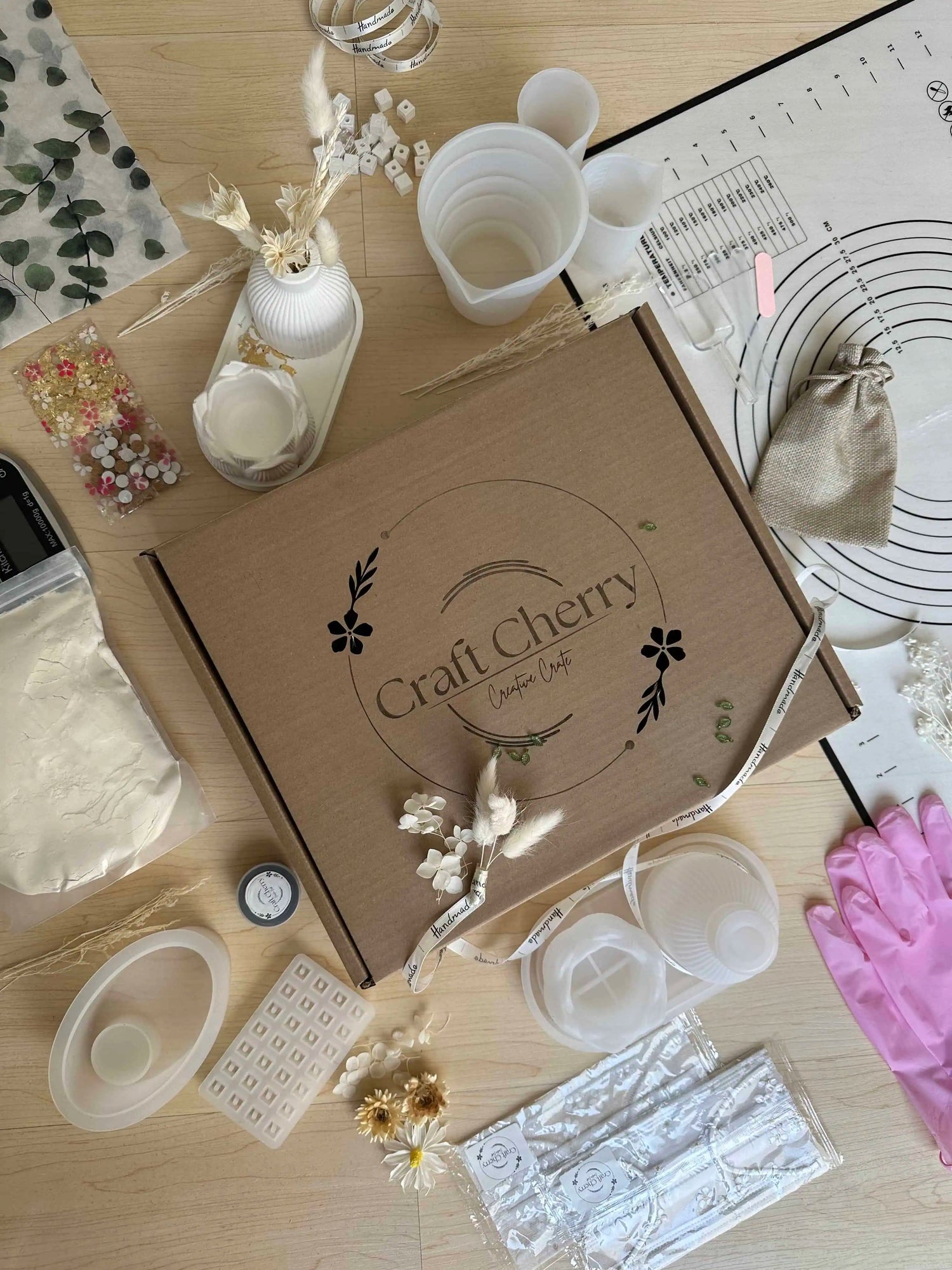 Along with the moulds, we have included a silicone mixing bowl, silicone water jugs, mixing sticks and a product scoop. We have included a scale and silicone table mat as well.